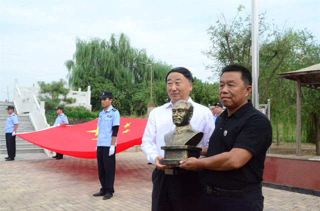 公司黨委書(shū)記、董事長(zhǎng)王力民代表公司,接受紀(jì)念園負(fù)責(zé)人曹文濱代表紀(jì)念園捐贈(zèng)的周恩來(lái)總理半身塑像。