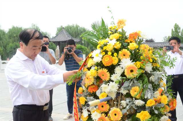 向周恩來(lái)總理骨灰撒放地紀(jì)念碑敬獻(xiàn)花籃,拜謁紀(jì)念碑。