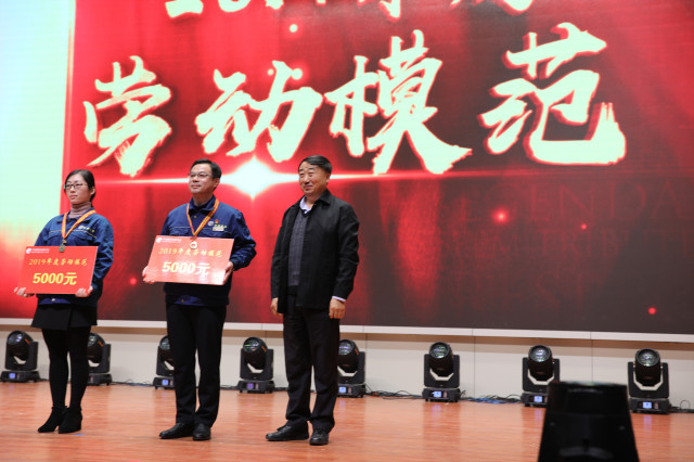 1月4日,在公司年度總結(jié)表彰大會(huì)上,公司黨委書記、董事長(zhǎng)王力民為獲得“2019年度勞動(dòng)模范”稱號(hào)的兩位員工——花布制版中心設(shè)計(jì)主管胡慧慧、動(dòng)力分公司經(jīng)理秦鴻章頒發(fā)了勞動(dòng)獎(jiǎng)?wù)潞蛣谀*?jiǎng)金。同時(shí),一部短短幾分鐘反映兩位年度勞模事跡的專題片播出后,得到廣大員工的普遍好評(píng)。