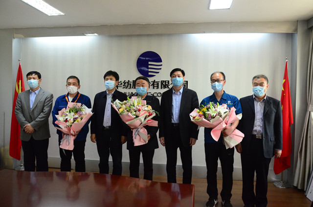 近日,五一勞動(dòng)節(jié)來臨之際,濱州市市委常委、秘書長(zhǎng)張延廷,市政協(xié)副主席、市總工會(huì)主席商玉昌,市總工會(huì)黨組書記、分管日常工作的副主席劉祖慶,市總工會(huì)黨組成員、副主席、經(jīng)審委主任王恩東一行,來到華紡股份有限公司,為濱州市五一勞動(dòng)獎(jiǎng)?wù)芦@得者、服裝車間主任晁金光頒發(fā)勞動(dòng)獎(jiǎng)?wù)?,向全?guó)紡織行業(yè)勞動(dòng)模范、山東省勞動(dòng)模范、公司黨委書記、董事長(zhǎng)王力民,山東省勞動(dòng)模范、電氣高級(jí)工程師趙奇生和晁金光三位企業(yè)勞模代表贈(zèng)送鮮花、表達(dá)慰問,并與他們進(jìn)行了深入座談。