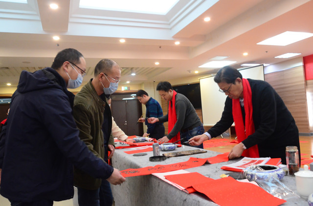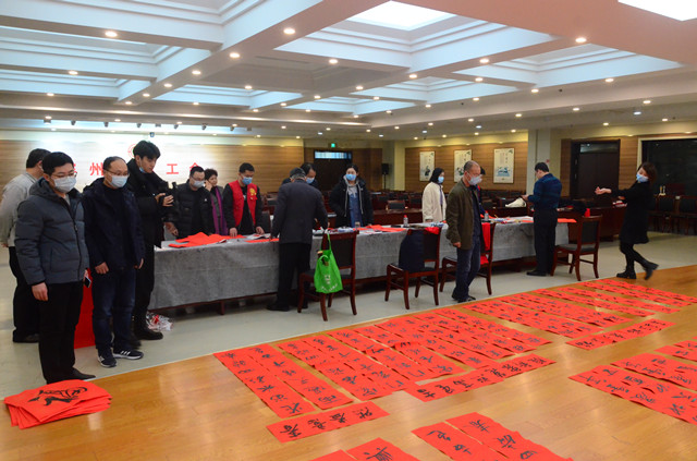 活動(dòng)中,市總工會(huì)黨組成員、副主席戴新生為到場(chǎng)的企業(yè)職工和勞模代表,分發(fā)了現(xiàn)場(chǎng)書(shū)寫(xiě)出的墨寶以及印制的春聯(lián),并向全市廣大企業(yè)職工送上新春祝福。