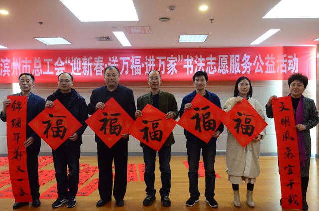 1月29日,市總工會(huì)在市職工活動(dòng)中心舉行“迎新春 送萬(wàn)福 進(jìn)萬(wàn)家”書(shū)法志愿服務(wù)公益活動(dòng)舉,邀請(qǐng)到市書(shū)法家協(xié)會(huì)的5位書(shū)法家現(xiàn)場(chǎng)書(shū)寫(xiě)春聯(lián)、福字。公司勞模代表和職工代表與渤?;钊⒔贿\(yùn)集團(tuán)的代表一道,參加此次活動(dòng)。