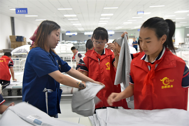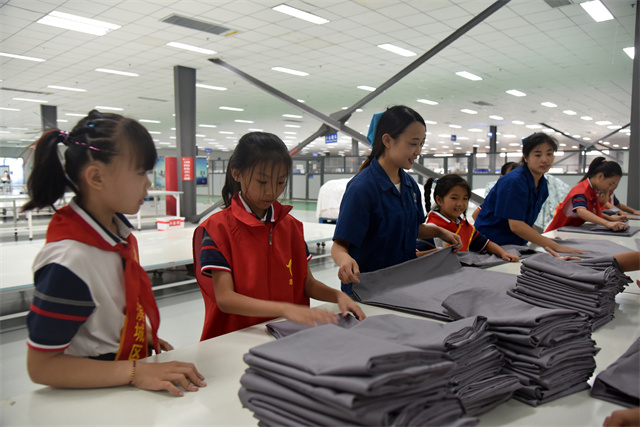 導(dǎo)讀:9月23日,濱城區(qū)玉龍湖小學(xué)四年級(jí)學(xué)生在老師帶領(lǐng)下走進(jìn)公司,實(shí)地參觀了公司的生產(chǎn)車間以及部分展廳,現(xiàn)場(chǎng)體驗(yàn)了家紡產(chǎn)品驗(yàn)整及包裝等生產(chǎn)環(huán)節(jié),感受勞動(dòng)的艱辛與快樂(lè)。