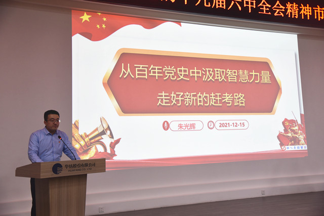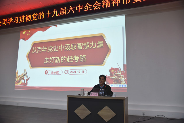 導(dǎo)讀:12月18日,市委宣講團(tuán)成員、市政協(xié)臺(tái)港澳僑和外事委員會(huì)副主任朱光輝來到公司,對黨的十九屆六中全會(huì)精神進(jìn)行專題宣講。