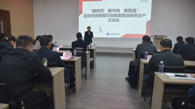 公司黨委副書記盛守祥代表公司,向與會領導及會員單位代表介紹了公司“退城進園”暨“智能綠色工廠建設項目”、升級印染全流程的智能制造等情況,并圍繞公司近年來大力推進企業(yè)轉(zhuǎn)型升級和新舊動能轉(zhuǎn)換工作,重點介紹了公司在智能智造、綠色生產(chǎn)方面的主要做法與經(jīng)驗。公司副總工程師王國棟對公司近年來推動轉(zhuǎn)型升級及打造“智慧華紡”的整體發(fā)展成效,作了專題報告。