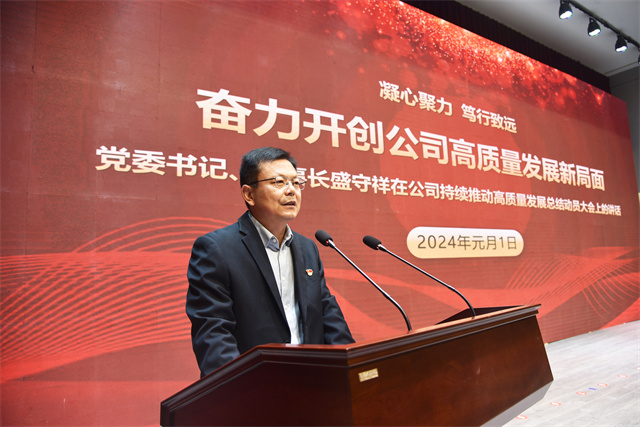 會議最后,盛守祥作了題為《凝心聚力 篤行致遠(yuǎn) 奮力開創(chuàng)公司高質(zhì)量發(fā)展新局面》的工作報(bào)告。報(bào)告全面總結(jié)梳理了公司過去一年的工作,深刻剖析了實(shí)際工作中的問題,為新階段工作提出了指導(dǎo)性意見。2024年,公司主要工作概括為四個(gè)方面:一是堅(jiān)持黨建引領(lǐng),夯實(shí)政治保障;二是堅(jiān)持綠色發(fā)展,抓好環(huán)保安全;三是以架構(gòu)之變、價(jià)值作風(fēng)之變、績效之變、造血止血之變、團(tuán)隊(duì)之變開啟變革之年,全面突破在望;四是在“產(chǎn)業(yè)鏈、資金鏈、人才鏈、創(chuàng)新鏈、供應(yīng)鏈”上持續(xù)發(fā)力,共建百億家園。