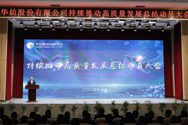 1月1日,華紡股份有限公司持續(xù)推動高質(zhì)量發(fā)展總結(jié)動員大會在會議中心一號會議室隆重召開。市國資委四級調(diào)研員王克寧,公司黨委書記、董事長盛守祥,公司黨委、行政班子成員以及員工代表等五百余人齊聚一堂,總結(jié)2023榮光,展望2024宏圖,表彰優(yōu)秀、激勵(lì)先進(jìn)、凝聚共識、匯聚力量,以昂揚(yáng)的姿態(tài)譜寫公司高質(zhì)量發(fā)展的新篇章。