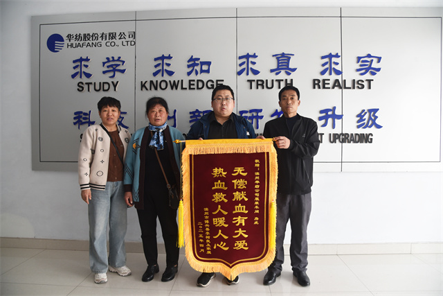 4月8日,服裝車間員工房虎收到了一面飽含深情的錦旗,上面寫著“無(wú)償獻(xiàn)血有大愛,熱血救人暖人心”。這面錦旗不僅是對(duì)房虎長(zhǎng)期堅(jiān)持無(wú)償獻(xiàn)血善舉的高度認(rèn)可,更彰顯了華紡人熱心公益、奉獻(xiàn)社會(huì)的精神風(fēng)貌。