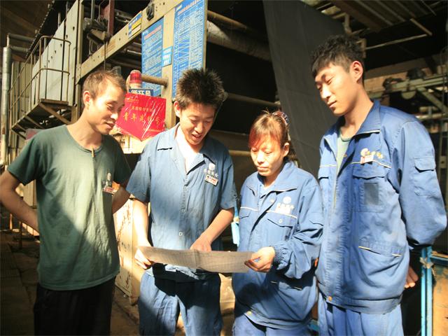 公司面二車間乙班1#、2#打底機(jī)組,是一個(gè)有4名成員的生產(chǎn)小組。機(jī)組長崔青龍帶領(lǐng)本機(jī)組成員在日常生產(chǎn)工作中,按照公司精益生產(chǎn)管理要求,嚴(yán)格執(zhí)行標(biāo)準(zhǔn)化操作,使本機(jī)組綜合生產(chǎn)效率保持良好,近年來多次躋身公司“青年(工人)先鋒號(hào)”行列。