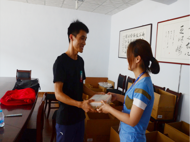 “吳青凱,生日快樂”,正在車間整理貨物的服裝公司業(yè)務(wù)員吳青凱聽到有人叫自己,一回身,只見營銷體系團(tuán)支部書記姜琳紅把一份工作餐遞到手里。看著眼前的驚喜,吳青凱開心的說:“原來今天是我的生日啊,謝謝公司對我們單身員工的關(guān)愛”。