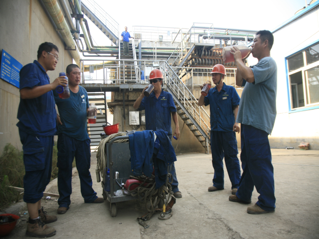 公司污水處理改造工程近來正在緊鑼密鼓地推進(jìn),大家盯靠在現(xiàn)場(chǎng),實(shí)在太渴了,就咕咚咕咚喝一通綠豆湯。他們的目標(biāo)是:保質(zhì)保量,全力投入,爭(zhēng)取提前完成這項(xiàng)重點(diǎn)工程。