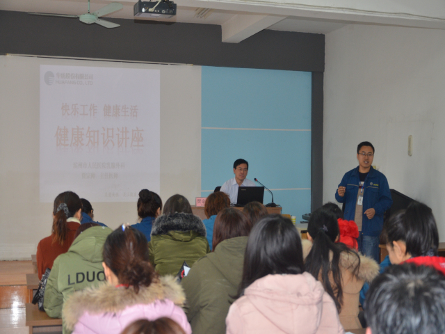 3月7日,公司邀請(qǐng)濱州市人民醫(yī)院乳腺外科主任醫(yī)師賈宗師,通過(guò)開(kāi)展講座、個(gè)別答疑等,普及健康知識(shí),提高公司廣大女工自我保健意識(shí),營(yíng)造“快樂(lè)工作健康生活”的良好氛圍,讓女工做一朵永葆青春的女人花。賈主任精彩和通俗易懂的解說(shuō),引來(lái)了陣陣掌聲,受到了女工的一致好評(píng)。