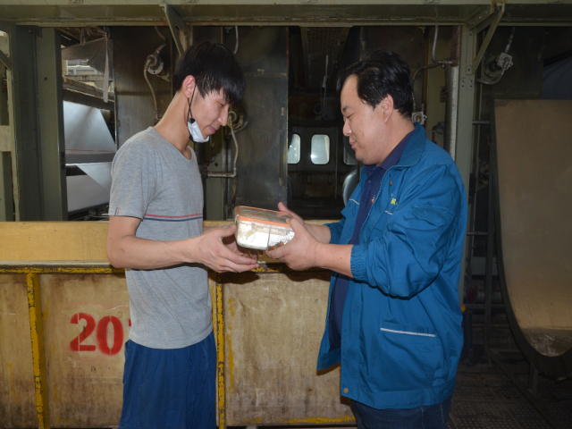 “紅燒肉、炸魚(yú)、雞腿、花卷、酸辣土豆絲”,這是公司為3月份過(guò)生日的50名單身員工準(zhǔn)備的單身員工生日餐。中午下班后,“壽星”們陸續(xù)來(lái)到餐廳領(lǐng)取屬于自己的生日餐,研究院李佳奇打開(kāi)生日餐盒,直言道“好香啊”。對(duì)于生產(chǎn)崗位三班員工,車間將統(tǒng)一領(lǐng)取,送到“壽星”所在的崗位。這不,今天中午家紡車間主任王旭洲早早地領(lǐng)到孔慶凡和王亞開(kāi)兩位員工的生日餐,并送到了他們的手中。