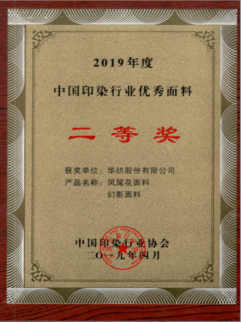 在剛剛結(jié)束的由中國印染行業(yè)協(xié)會舉辦的2019年度“中國印染行業(yè)優(yōu)秀面料”評選活動中,公司3套作品從參評的384個產(chǎn)品中脫穎而出,獲得表彰。其中,淺墨化蝶面料產(chǎn)品獲得一等獎,鳳尾花面料和幻影面料獲得二等獎,這也是公司面料產(chǎn)品再一次獲得行業(yè)表彰和認可。